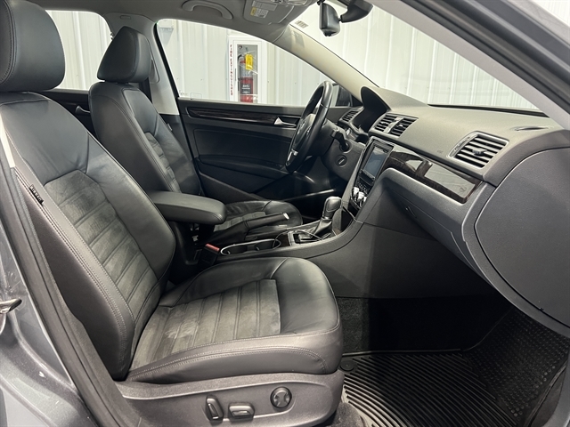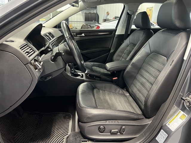 Fully detailed, Black/Gray Leather, 18`` Bristol Alloy Wheels, 4-Wheel Disc Brakes, 9 Speakers, ABS brakes, Air Conditioning, Alloy wheels, AM/FM radio: SiriusXM, Auto-dimming Rear-View mirror, Automatic temperature control, Bodyside moldings, Brake assist, Bumpers: body-color, CD player, Compass, Delay-off headlights, Driver door bin, Driver vanity mirror, Dual front impact airbags, Dual front side impact airbags, DVD-Audio, Electronic Stability Control, Emergency communication system: Car-Net, Exterior Parking Camera Rear, Four wheel independent suspension, Front anti-roll bar, Front Bucket Seats, Front Center Armrest, Front dual zone A/C, Front fog lights, Front reading lights, Fully automatic headlights, Garage door transmitter: HomeLink, Heatable Front Bucket Seats, Heated door mirrors, Heated front seats, Illuminated entry, Leather Shift Knob, Leather steering wheel, Low tire pressure warning, Memory seat, Navigation System, Occupant sensing airbag, Outside temperature display, Overhead airbag, Overhead console, Panic alarm, Partial Leather Seating Surfaces, Passenger door bin, Passenger vanity mirror, Power door mirrors, Power driver seat, Power moonroof, Power passenger seat, Power steering, Power windows, Radio data system, Rear anti-roll bar, Rear reading lights, Rear seat center armrest, Rear window defroster, Remote keyless entry, RNS 510 Navigation System, Security system, Speed control, Speed-sensing steering, Split folding rear seat, Steering wheel mounted audio controls, Tachometer, Telescoping steering wheel, Tilt steering wheel, Traction control, Trip computer, Turn signal indicator mirrors, Variably intermittent wipers. 2014 Volkswagen Passat TDI SEL Premium FWD 6-Speed DSG Automatic with Tiptronic 2.0L TDI Diesel Turbocharged